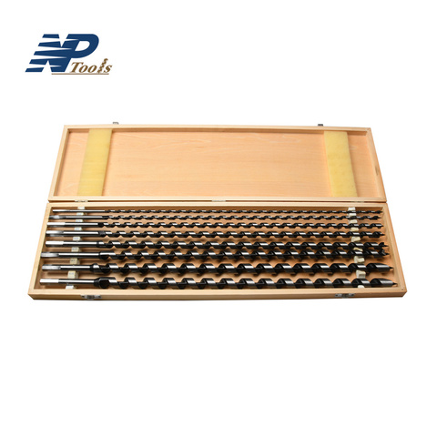 Naipu 8 Stuks Inch Formaat Extra Lange Zeskant Schacht Vijzel Bohrer Broca De Madera Hout Vijzel Boor Set Met Houten Kist Voor Diep Gat